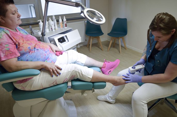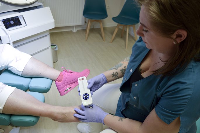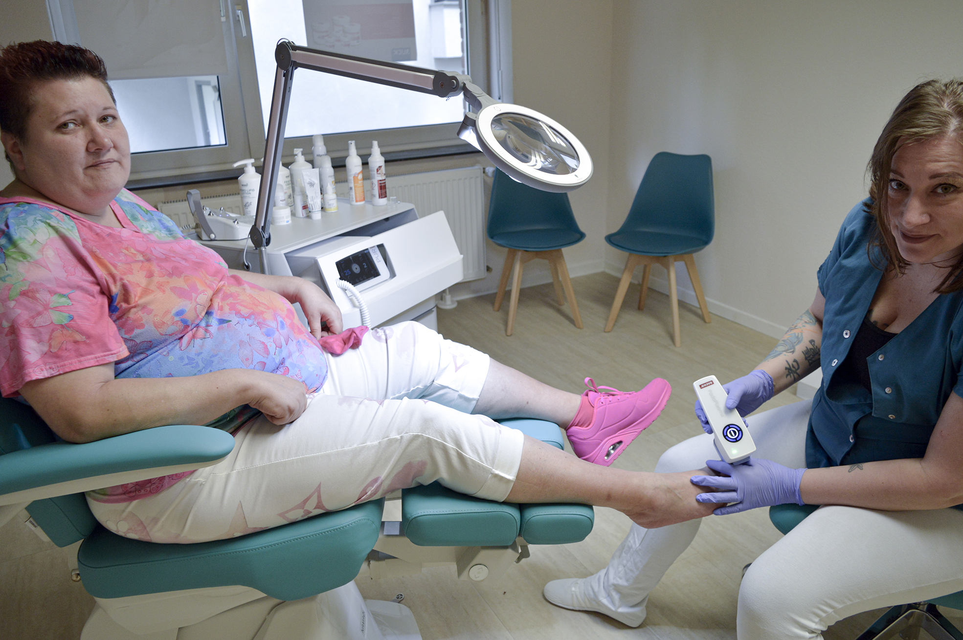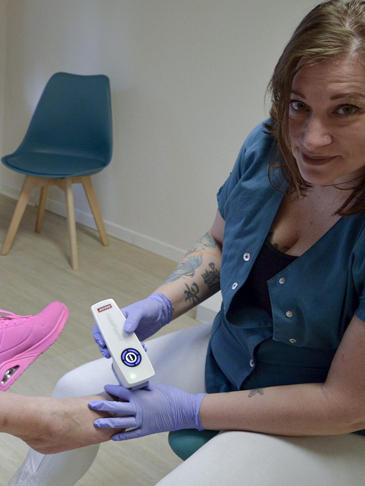 Die Vorteile: Besonders einfache und schnelle Behandlung: Das Kaltplasma wird für 5 Minuten auf alle betroffenen Zehen – auch mit anliegender Nagelspange – appliziert (max. 3 Zehen können gleichzeitig behandelt werden).